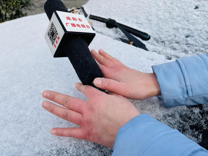 2021年12月26日,冒著風(fēng)雪嚴(yán)寒在戶外連續(xù)工作幾個(gè)小時(shí),咸陽市廣播電視臺記者王倩的雙手凍得通紅。