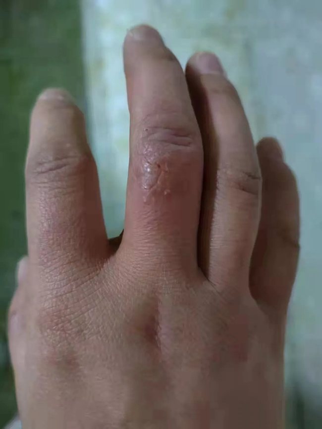 護(hù)士長楊敏的手被凍出了瘡。西安大興醫(yī)院供圖