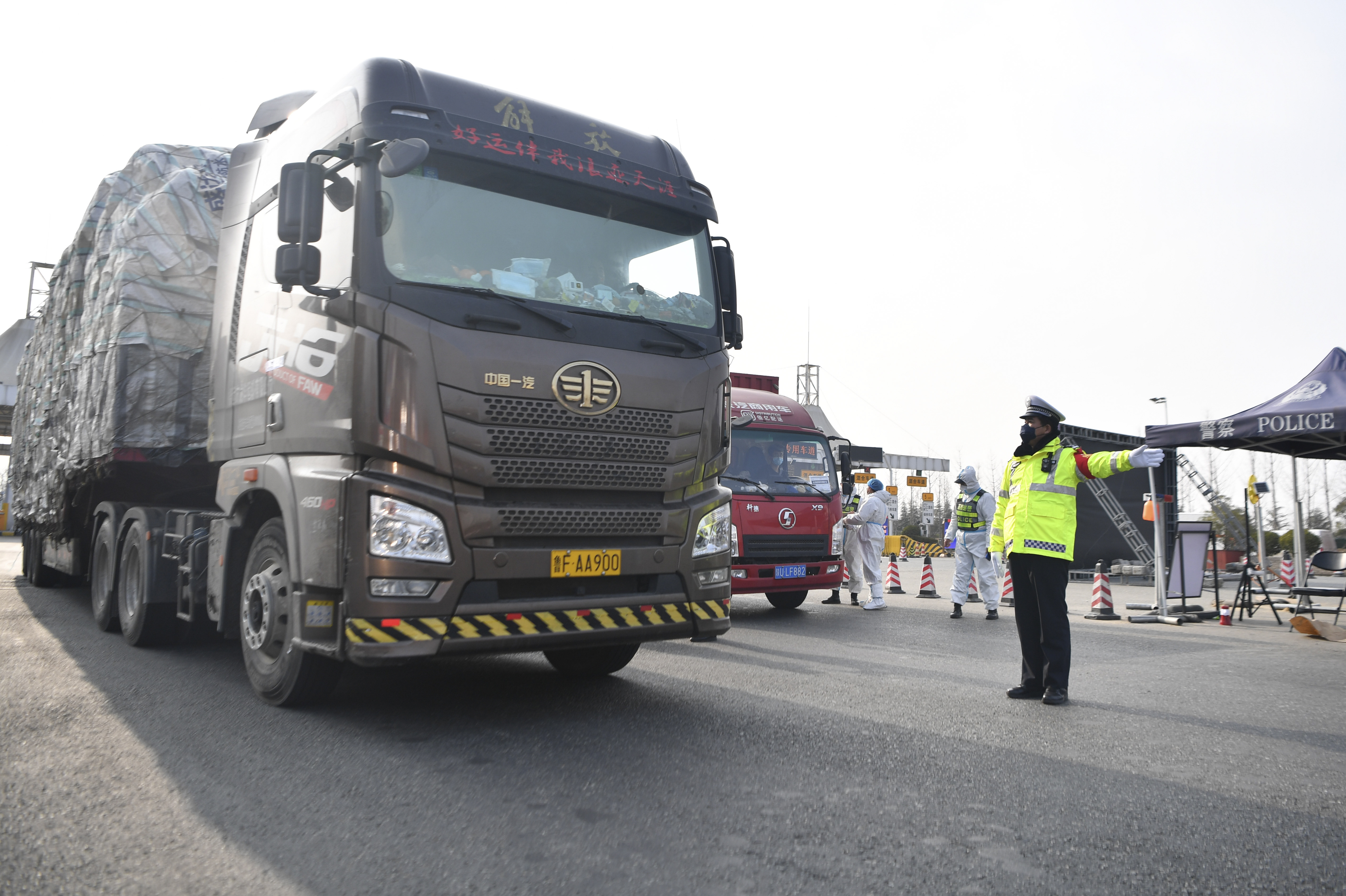 1月10日,西安市公安局交通警察支隊民警在西安市繞城高速河池寨收費(fèi)站指揮引導(dǎo)車輛通過。新華社記者 張博文 攝