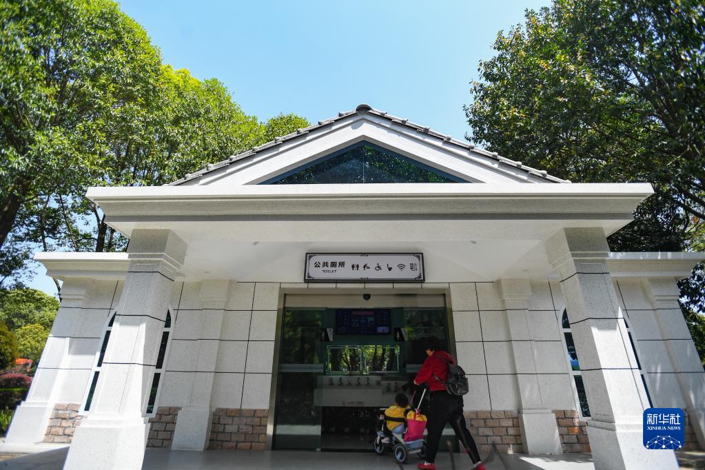 市民帶著小朋友進(jìn)入位于湖南長沙縣星沙中心廣場的智慧廁所(2021年3月24日攝)。新華社記者 陳澤國 攝