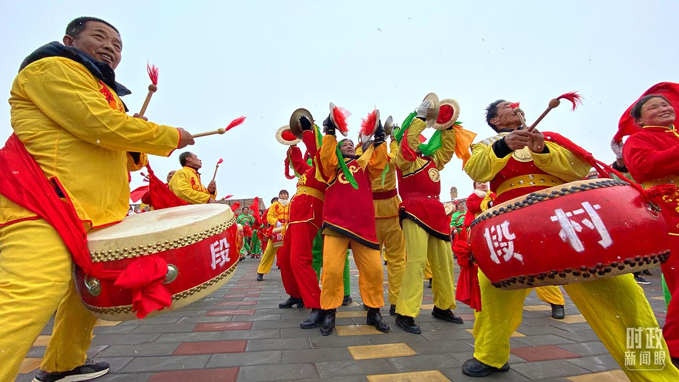 △段村威風(fēng)鑼鼓表演。(總臺(tái)央視記者郭曉龍拍攝)