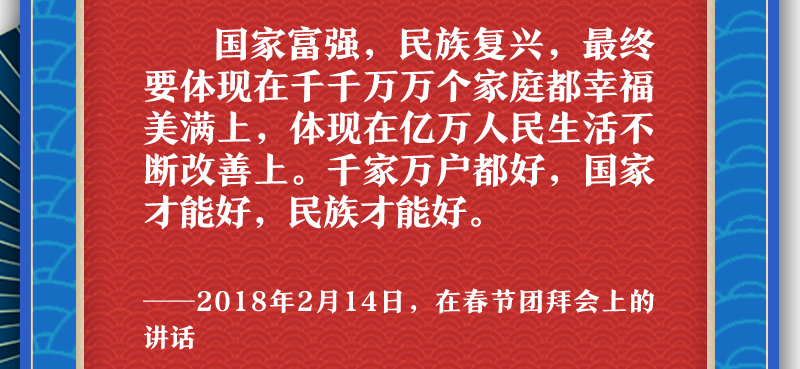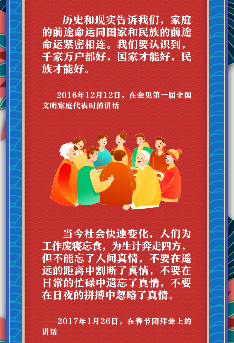 他提醒大家,把實(shí)現(xiàn)家庭夢(mèng)融入民族夢(mèng)之中,心往一處想,勁往一處使。