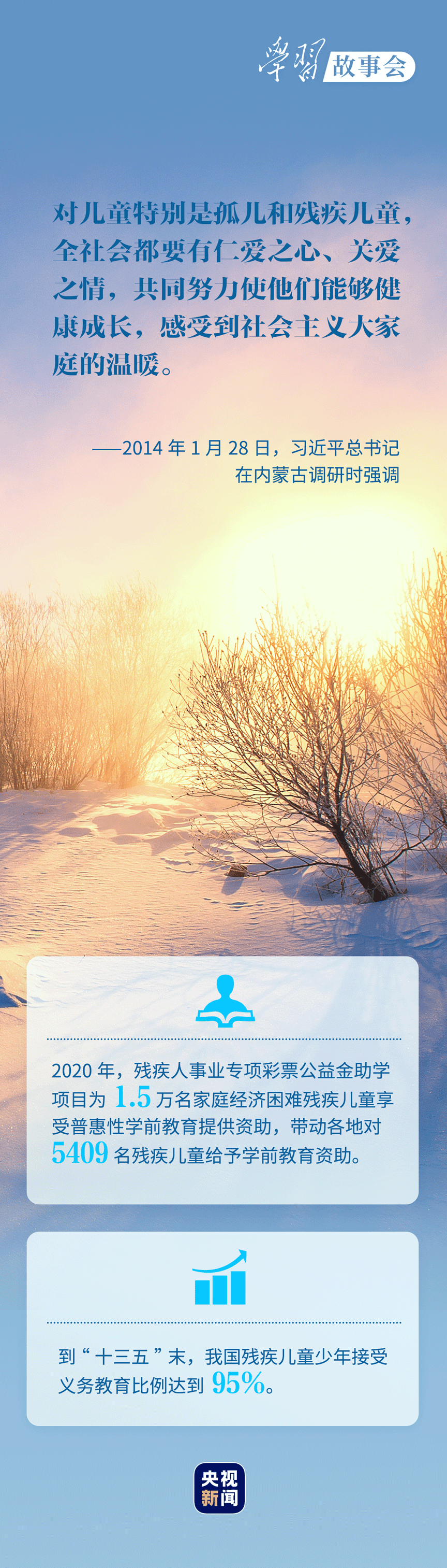 考察河北唐山市截癱療養(yǎng)院,看望呼和浩特市兒童福利院的孤殘兒童,會(huì)見(jiàn)殘疾人群體代表.....無(wú)論春夏秋冬,總書(shū)記對(duì)殘疾人群體的殷殷關(guān)懷溫潤(rùn)心田。