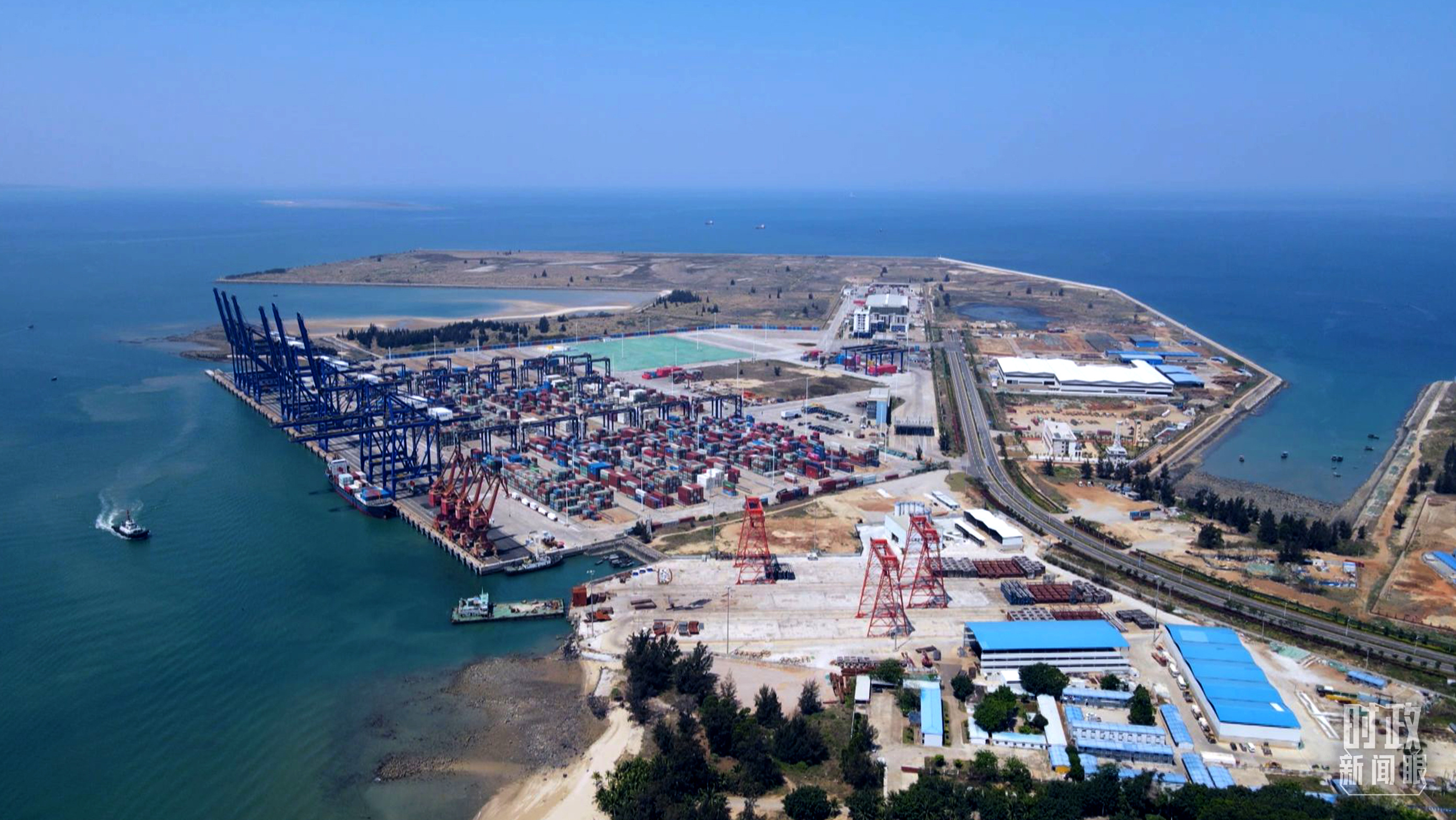△洋浦國(guó)際集裝箱碼頭小鏟灘港區(qū)。(總臺(tái)央視記者彭漢明拍攝)
