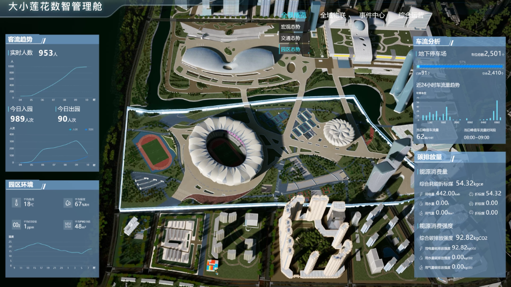 據(jù)悉,數(shù)智管理艙鏈接了整個(gè)“大小蓮花”區(qū)域內(nèi)的50個(gè)弱電系統(tǒng)、2萬多個(gè)設(shè)備、8萬多個(gè)設(shè)備單元,可以實(shí)現(xiàn)對(duì)場館區(qū)域內(nèi)的水、電、氣等實(shí)時(shí)能耗的監(jiān)測,還可以統(tǒng)計(jì)二氧化碳、碳排放量等。