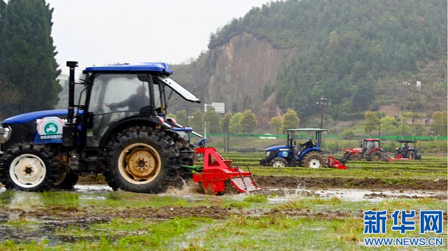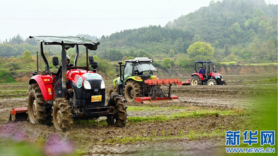 在江西省宜春市袁州區(qū)新田鎮(zhèn)里光村的水田里,數(shù)十臺(tái)拖拉機(jī)齊上陣,在春天的田野上描繪出一幅幅“鐵牛鬧春圖”。新華網(wǎng)發(fā) 張文 攝