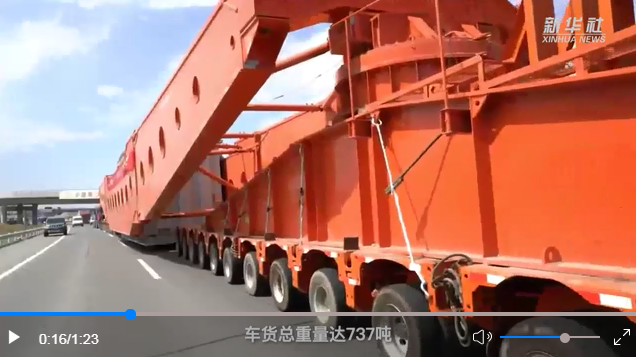 日前,一輛車輪總數(shù)多達(dá)350個(gè)的超大型運(yùn)輸車,搭載著一臺(tái)±800千伏變壓器,從新疆昌吉市出發(fā)駛往甘肅酒泉市。這個(gè)“大塊頭”長(zhǎng)99米、寬5.2米、高5.2米,車貨總重量達(dá)737噸,由兩個(gè)車頭牽引、一個(gè)車頭助推,車輛長(zhǎng)度、載重噸位均創(chuàng)新疆大件運(yùn)輸史之最。