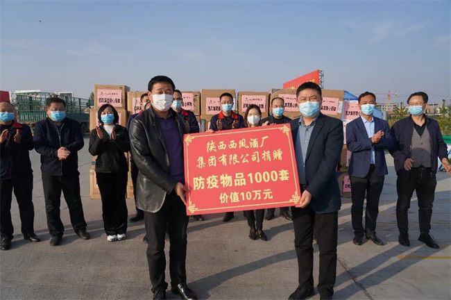 儀式上,西鳳集團公司向鳳翔區(qū)新冠疫情工作領導小組捐贈了價值10萬元的防疫物資1000套。