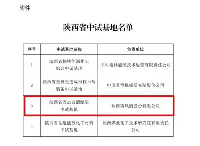 西部決策網(wǎng)訊(記者艾米杰 韓宗憲 通訊員馬迪 吳婷蘭)近日,陜西省科技廳公布了首批支持建設(shè)的省級(jí)中試基地名單,陜西西鳳酒股份有限公司“陜西省固態(tài)白酒釀造中試基地”項(xiàng)目成功獲批并獲得建設(shè)經(jīng)費(fèi)500萬(wàn)元。