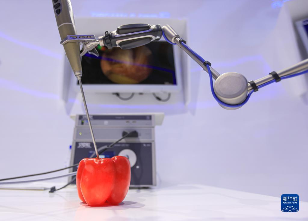11月7日在第五屆進博會德國卡爾史托斯展臺拍攝的電子內窺鏡。新華社記者 李京 攝