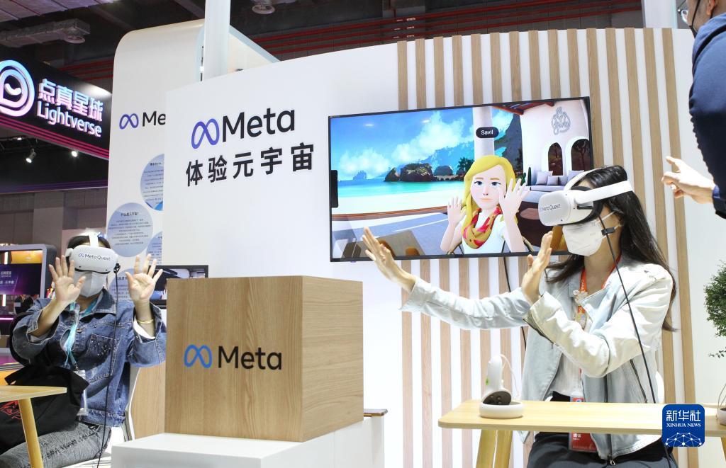 11月7日,在第五屆進博會技術裝備展區(qū)的人工智能專區(qū),體驗者借助VR頭戴設備感受在虛擬工作空間“隔空擊掌”。新華社記者 侯俊 攝