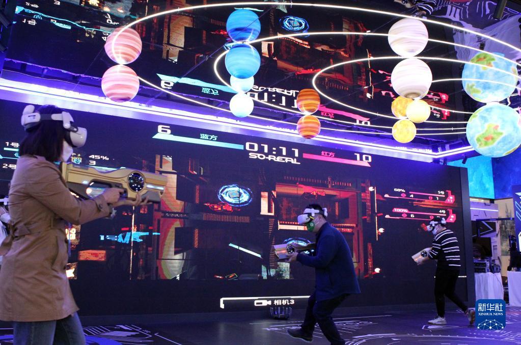 11月7日,在第五屆進博會技術裝備展區(qū)的人工智能專區(qū),體驗者借助VR設備進行電競互動游戲。新華社記者 侯俊 攝