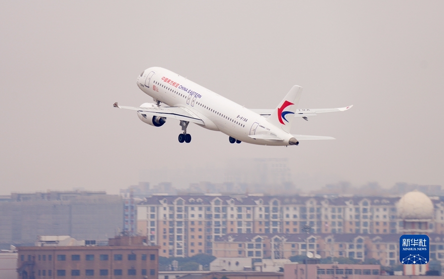 2022年12月26日,國(guó)產(chǎn)大飛機(jī)C919在上海虹橋國(guó)際機(jī)場(chǎng)起飛。 當(dāng)日,國(guó)產(chǎn)大飛機(jī)C919交付東航的全球首架機(jī)的首班驗(yàn)證飛行開(kāi)啟,從上海虹橋國(guó)際機(jī)場(chǎng)飛往北京首都國(guó)際機(jī)場(chǎng)。 新華社發(fā)