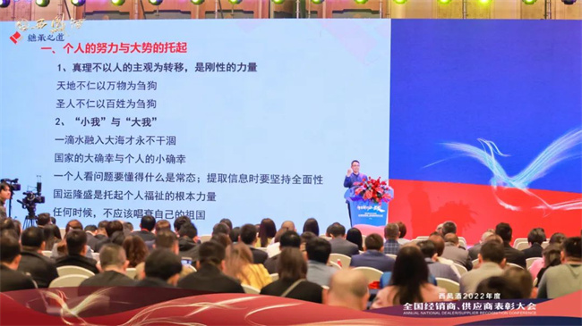 會議宣讀了《關于對2022年度優(yōu)秀經(jīng)銷商、供應商進行表彰獎勵的決定》,并對獲得年度重大貢獻獎、杰出貢獻獎、突出貢獻獎等獎項的優(yōu)秀經(jīng)銷商及供應商進行了現(xiàn)場頒獎表彰。