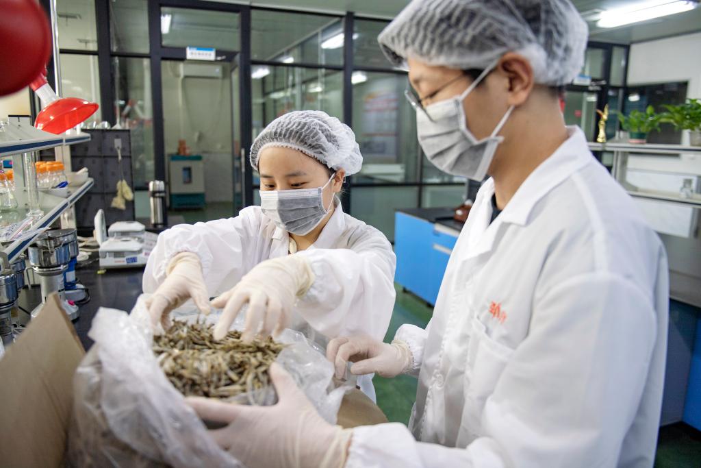 在湖南省岳陽市平江高新技術(shù)產(chǎn)業(yè)園區(qū),勁仔食品平江生產(chǎn)基地實(shí)驗(yàn)室工作人員開箱,準(zhǔn)備對(duì)肯尼亞野生鳀魚產(chǎn)品進(jìn)行水分檢測(cè)(6月28日攝)。6月29日,中國首次進(jìn)口的肯尼亞野生鳀魚產(chǎn)品在湖南長(zhǎng)沙開幕的第三屆中非經(jīng)貿(mào)博覽會(huì)上亮相。新華社記者 孫瑞博 攝