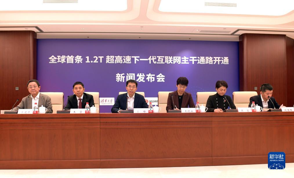 11月13日,全球首條1.2T超高速下一代互聯(lián)網(wǎng)主干通路開通新聞發(fā)布會(huì)在清華大學(xué)舉行。新華社發(fā)(清華大學(xué)供圖)