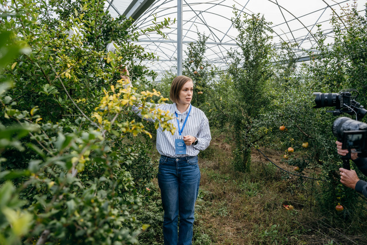 10月12日,歐亞主流媒體考察團(tuán)成員在陜西省渭南市潼關(guān)縣軟籽石榴產(chǎn)業(yè)園內(nèi)采訪調(diào)研。新華社發(fā)(朱軍強(qiáng) 攝)