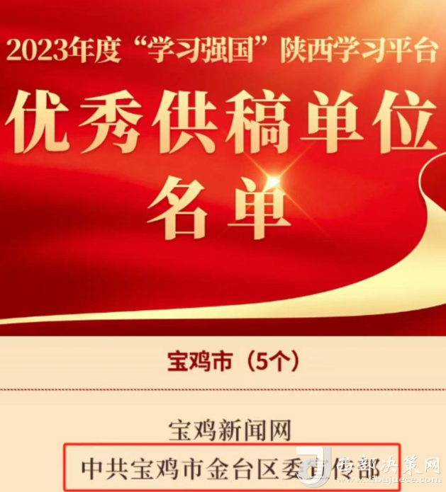 西部決策網訊(記者帥華鋒 通訊員 徐紅娟)近日,在“學習強國”陜西學習平臺2023年度管理員通訊員培訓會上,中共寶雞市金臺區(qū)委宣傳部被授予“優(yōu)秀供稿單位”榮譽稱號,成為寶雞僅有的5個受表彰供稿單位之一。