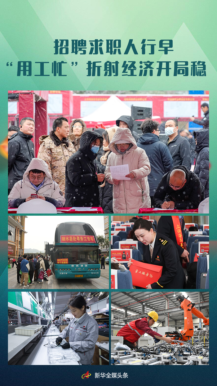 “用工忙”折射開局穩(wěn),釋放出經(jīng)濟運行回穩(wěn)向好的信心。從跨省招工、專車專列接人返崗,到密集招聘、發(fā)布穩(wěn)企拓崗新政策……各地搶抓勞動者流動及企業(yè)復(fù)工關(guān)鍵期,全力保用工、穩(wěn)就業(yè),努力跑好龍年穩(wěn)經(jīng)濟第一棒。