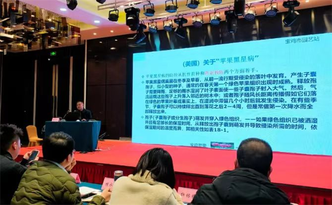 會議邀請市園藝站副站長、正高級農(nóng)藝師李廣文老師,高級農(nóng)藝師、果樹特聘專家曹儒老師,分別培訓蘋果園春季管理技術(shù),蘋果園春季病蟲害防控及晚霜防御技術(shù)。